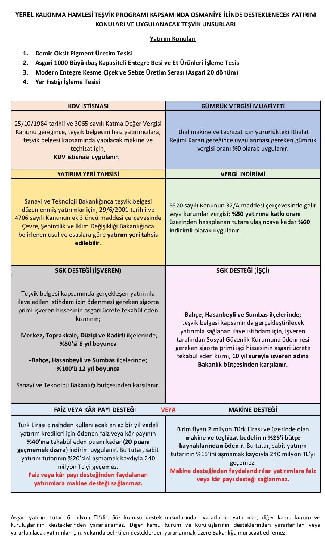• Daha detaylı bilgi almak isteyenlerin ilimiz için Osmaniye Ticaret Odası yanında bulunan  DOĞAKA ofisine müracaat etmesi gerekir.