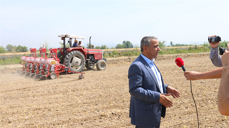 Çiftçileri anız yakmamaları konusunda uyaran Tarım ve Orman İl Müdürümüz İbrahim SAĞLAM, Yan tarlamızda hububat ekininin hasadını yaptık. Çukurova bölgemizde o kadar güzel verimli topraklarımız var ki, bir taraftan birinci ürün ekilmiş olan buğdayın hasadı yapılırken, ikinci ürün soyanın hemen yan tarlada ekildiğini görüyoruz. Verimli topraklarımızda yılda iki, üç ürün alıyoruz. Bu topraklarda tarımda sürdürülebilirliğinin devam etmesi gerekiyor. Onun için anızları yakmayın diyoruz. Direk anıza ekim yapılan tarlalarda yüzde 20-25'e varan oranlarda artış görülmekte. Bugünde burada ikinci ürün olarak soya ekiliyor. Bölgemizde ikinci ürün olarak soya, yerfıstığı ve mısır gibi ürünleri üretebilmekteyiz. Topraklarımızın devamlı tarımda kalabilmesi ve sürdürülebilir tarımın yapılabilmesi için diyoruz anızlar yakılmasın, topraklarımız hor kullanılmasın. Biz bu toprakları atalarımızdan miras değil, çocuklarımızdan ödünç aldık. Gelecek nesillere tarım yapılabilir bir temiz toprak bırakmak hepimizin görevi. Aynı zamanda şartlarımız ne olursa olsun bizim mutlaka üretim yapmamız lazım.