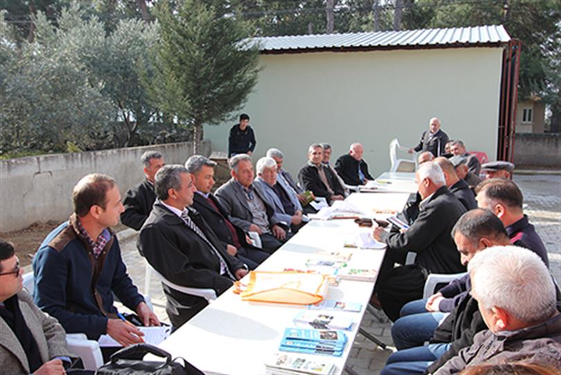 Köyyeri Köy Konağı önünde yapılan toplantıda yörenin ürün deseni dikkate alınarak teknik bilgiler aktarıldı ve konulara uygun kitapçık ve liflet dağıtımı yapıldı.